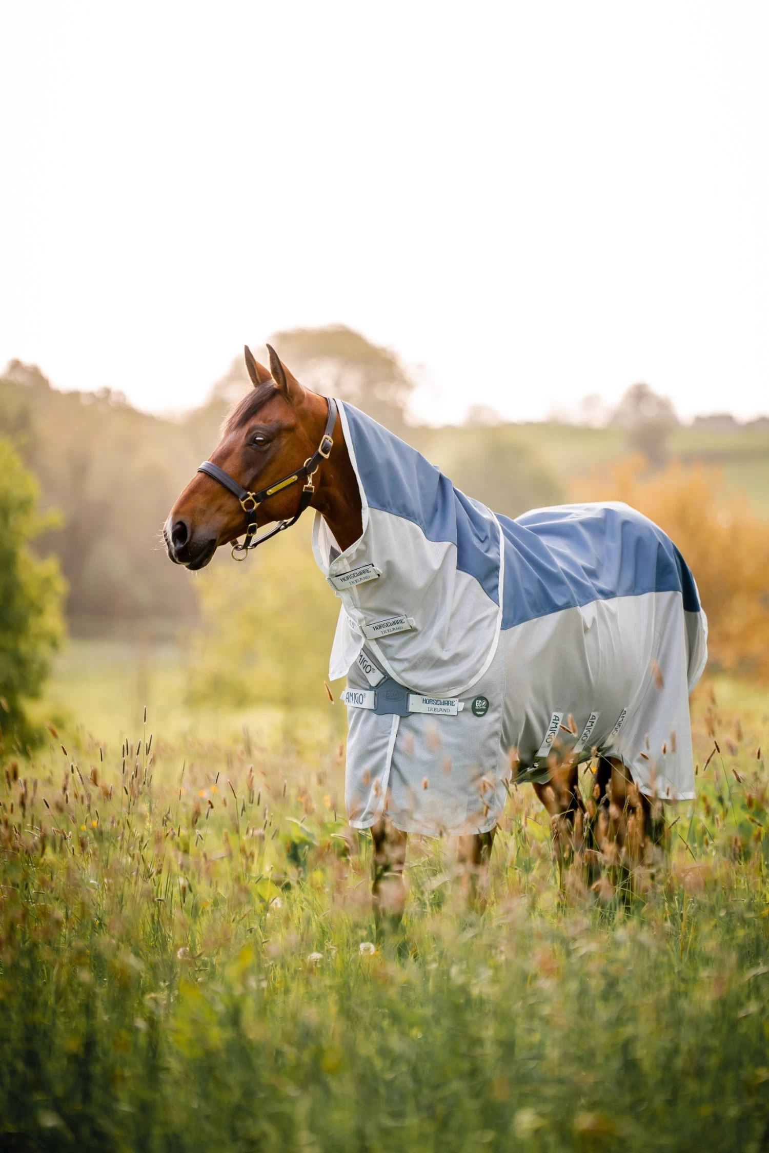 Amigo Ameco Combi is an eco friendly fly rug providing 65% UV Protection! It is made from waterproof 1200D rPET polyeter top and breathable mesh panel sides.