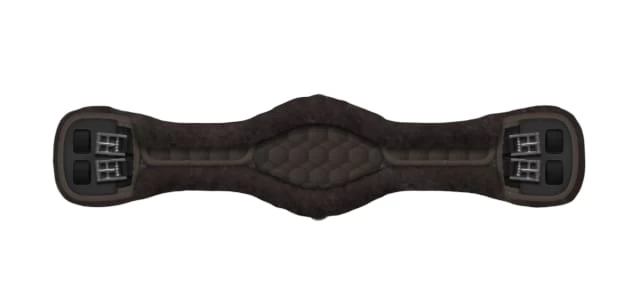 The anatomical brown saddle girth is designed to allow the horse full freedom of movement, the soft sheepskin reduces the risk of chafing and means that the horse is not hindered in its movement. The dressage girth is made of quilted textile and both saddle girth and sheepskin are machine washable.