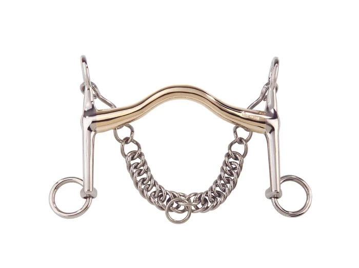 This weymouth bit from Herm. Sprenger combines the benefits of Sensogan, which is a unique metal that promotes salivation and stainless steel. Sensogan which is the material that the bit is made of is Sprenger’s latest material made of copper, manganese and zinc for reduced oxidation and better well-being. Sprenger’s weymouth bit is available 5 or 7 cm long shanks. The shorter shanks gives a more direct contact and the longer ones becomes sharper.