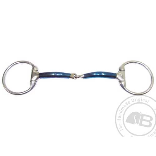 This Eggbutt Lock Up bit has fixed cheeks pieces that prevent the bit from being pulled through the mouth. The lock-up function of the Eggbutt Lock Up bit removes the ‘nut cracker’ action of conventional snaffles, making it a milder bit than other single-jointed bits. The Bombers bits are all handmade in sweet iron and brass metals that have a warming effect and sweet taste in the horse’s mouth and as a result, promote increased salivation. The length and width of the bit is specified in millimetres.