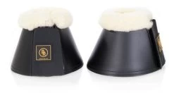 Stylish and practical over reach boots in black synthetic leather with a soft sheepskin trim. Lining of Neoprene fabric and fitted with wide Velcro fasteners. We stock these boots in black and white, sizes L and XL. Other sizes are available upon request. Sold in sets of two. Tips to keep the sheepskin fluffy after washing: Tumble dry your over reach boots at a low temperature for a short while. NB! Your boots may get damaged if you tumble dry them for too long or at a temperature that is too high!