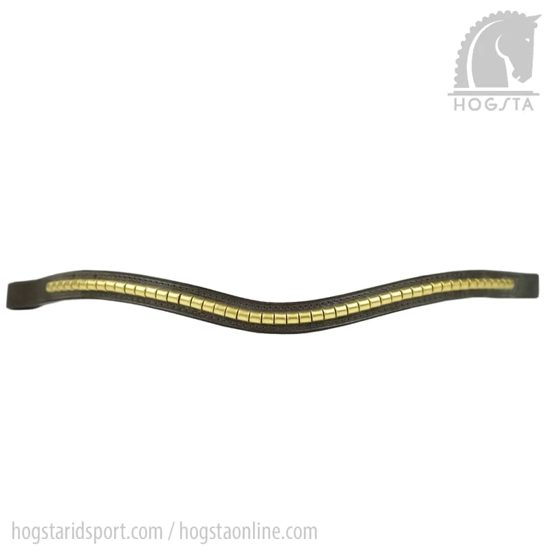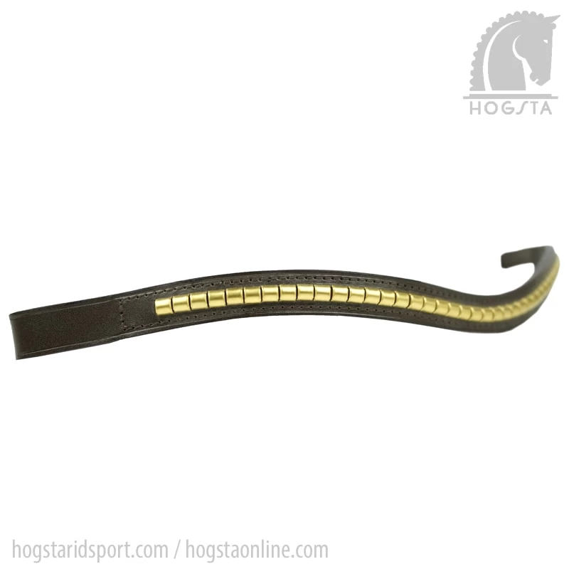 The curved browband from Otto Schumacher in brown leather is adorned with brass clinker, a stylish browband of high quality! The clinker browband is available both for plain and round sewn leather.