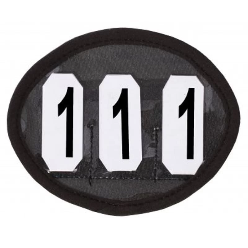 The number badge has 3 digits so you can use numbers from 000-999. The number badge is easily attached to the saddle pad with the associated safety pin.
