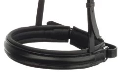 This noseband has cut back and is 4cm wide. Available for both flat and round-sewn double bridles.