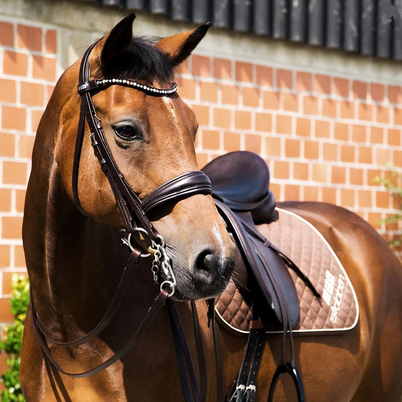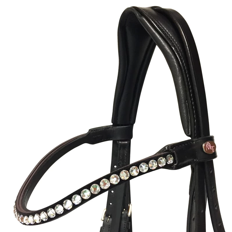 It has an anatomically cut back head piece which is innovatively padded to release pressure on the neck. The noseband is curved and softly padded and has an interchangeable loop, which means it can be removed to give you the choice of either a French or Combined noseband. The noseband buckles on both sides of the bridle to eliminate bulk over the head.