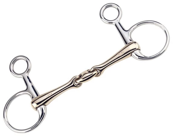 Herm. Sprenger double-jointed Baucher bit in Sensogan. 16 mm thick. Available in sizes 115 mm, 125 mm and 135 mm. 145 mm can be ordered upon request (not subject to money back guarantee).