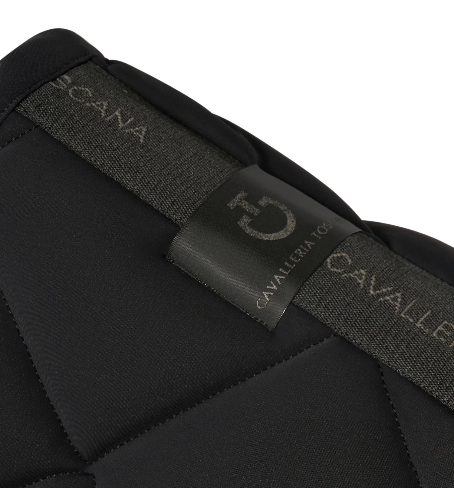 DQ Jersey Jumping Saddle Pad from Cavalleria Toscana is super nice with big, quilted squares. This saddle pad is in black with a white CT logo on the side.