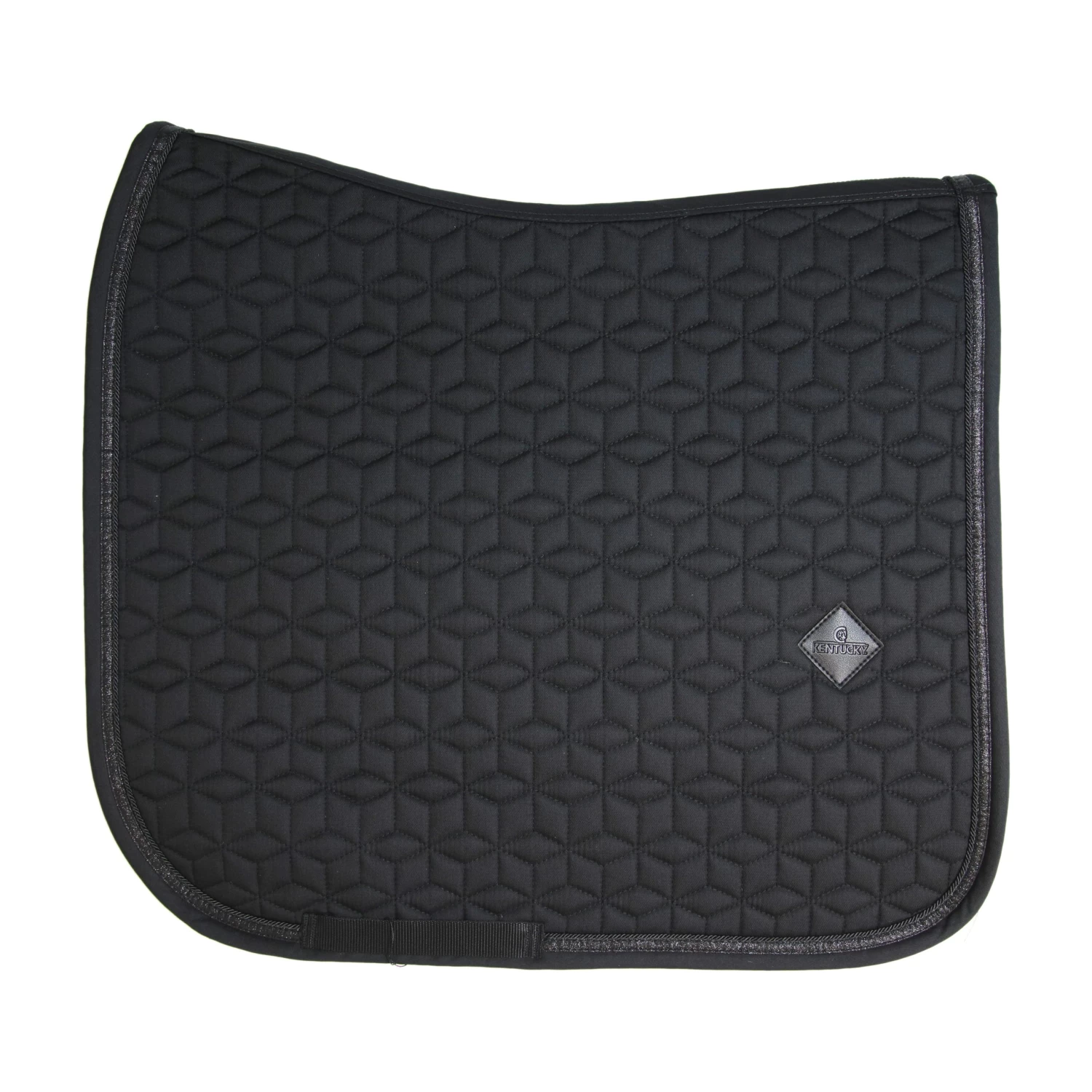 Stylish black dressage saddle pad with a unique star quilting and a decorative glitter binding. The dressage saddle pad from Kentucky provides excellent cushioning between the horse’s back and the saddle while protecting against friction.
