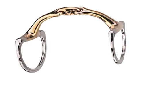 Dynamic RS Bridoon is a double-jointed eggbutt bit with D-rings, the mouthpiece of which is characteristic of the Dynamic RS bit range. The fixed rings offer enhanced stability, performance and prevent pinching of the horse’s mouth. This bit is made of the matrial Sensogan which is Sprenger’s latest material made of copper, manganese and zinc for reduced oxidation and better well-being. On this bit, the mouthpiece is made of Sensogan and the bit rings of stainless steel.