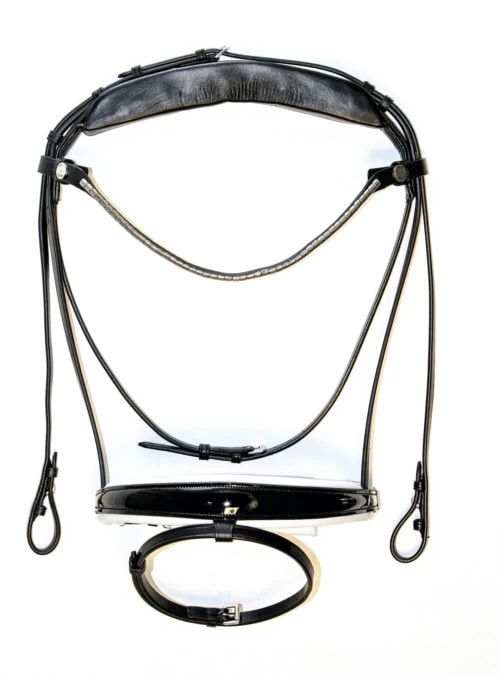 Finesse Bridles uses a completly different design when it comes to crown pieces in comparison to other headstalls on the market. Finesse’s bridles and double bridles features a crown piece, developed to evenly ditribute and reduce the pressure on the horse’s neck. The technology behind the crown piece is developed by engineers and experts in the area, who have also developed hospital matresses for bedridden patients where bedsores and pressure sores are common problems. The crown piece is crafted in a unique fiber material which allows blood flow through the body (neck) regardless of how the horse is built.