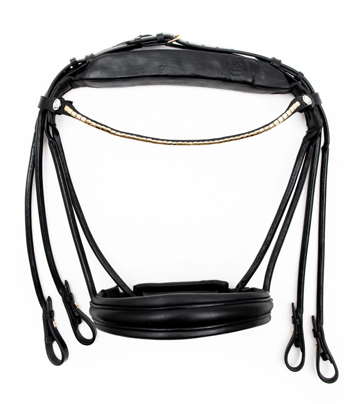 Finesse Bridle has a completely different design of neck piece compared to other main teams on the market, the neck piece on these bridles and jaws is designed to distribute and reduce the pressure on the horse’s neck.