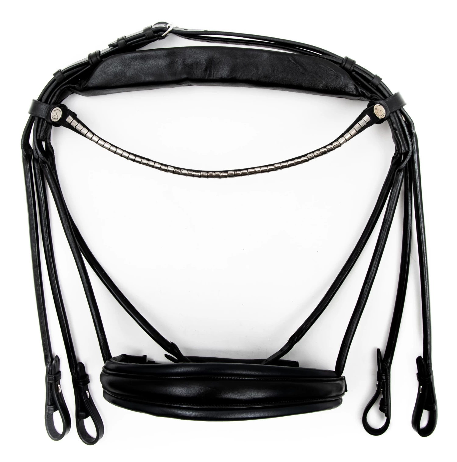 Finesse Bridle has a completely different headpiece design compared to other bridles on the market, the crownpiece of their bridles and double-bridles is designed to spread and reduce the pressure on the horse’s neck.
