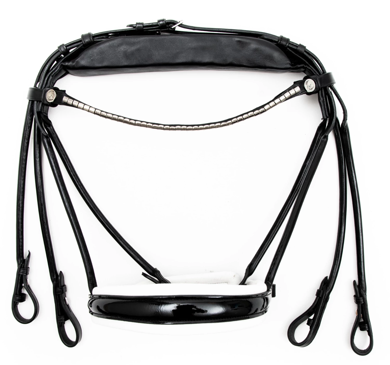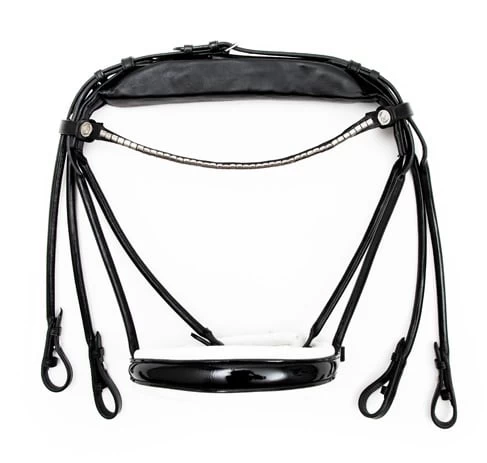 Finesse Bridle has a completely different headpiece design compared to other bridles on the market, the crownpiece of their bridles and double-bridles is designed to spread and reduce the pressure on the horse’s neck.