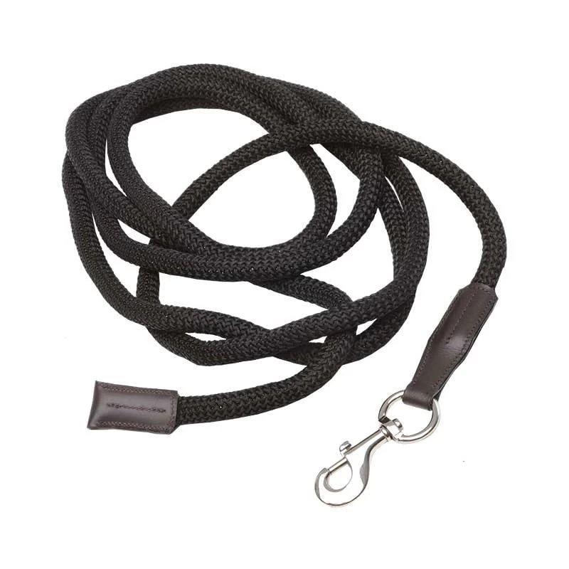 The lead rope is made of nylon and is 4m long. Decorative leather details at the snap hook and at the end of the lead rope.