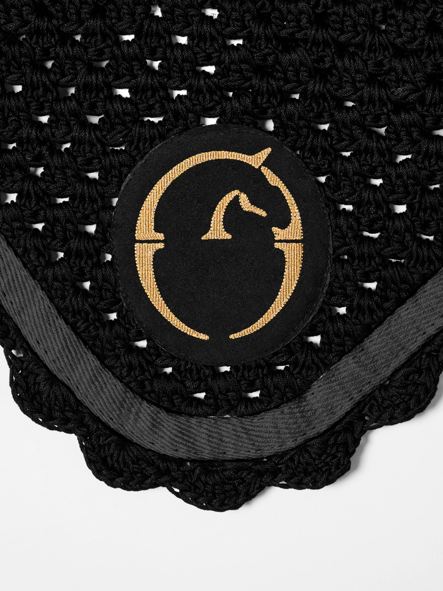 Leeds earnet for horses is very stylish and nice. The earnet from Vestrum is knitted in black with the Vestrum logo in gold on the front and Vestrum written in gold on the left ear.