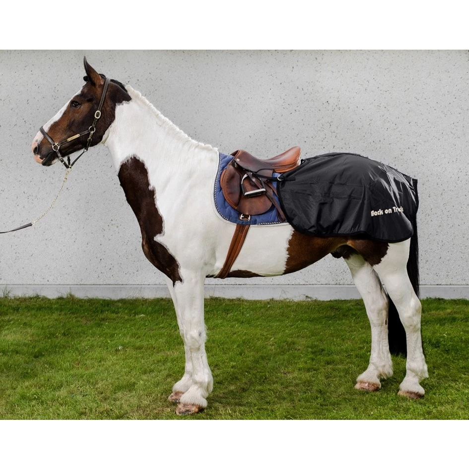 Positioned behind the saddle, the Back on Track Loin Rug is perfect for use during warm up. Rainproof.