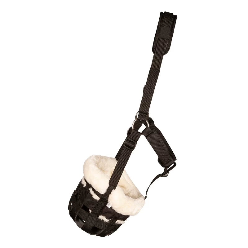Rubber nose part and lined with synthetic fur to counteract chafing! Mouth basket / grazing reducer for horses is used, among other things, when you have to help the horse to limit the intake of grass or when the horse needs to eat more slowly.