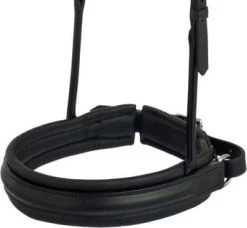 Extra soft padded 5 cm wide noseband for use on a double bridle or riding without a flash noseband. Otto Schumacher are renowned for their exquisite leather goods, their nosebands being no exception. This noseband is available in Black or Tan with a matching or white lining. Additional options are available with personalised designs. Such additional options include brass buckles and a patent noseband.