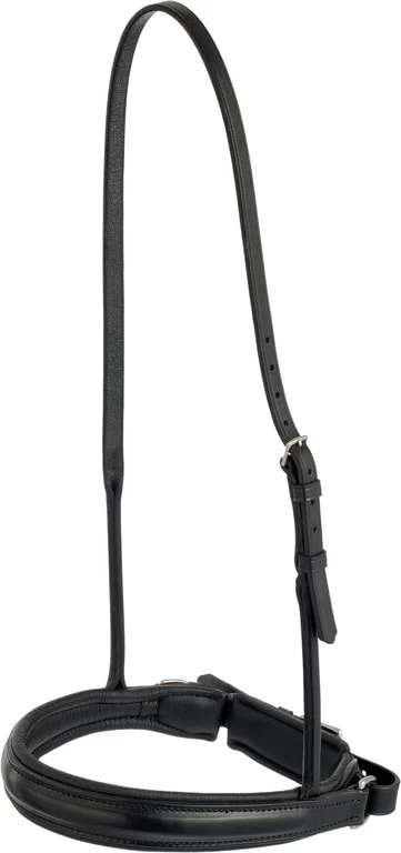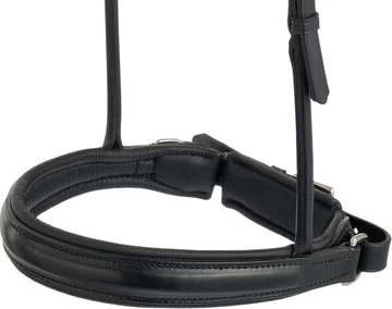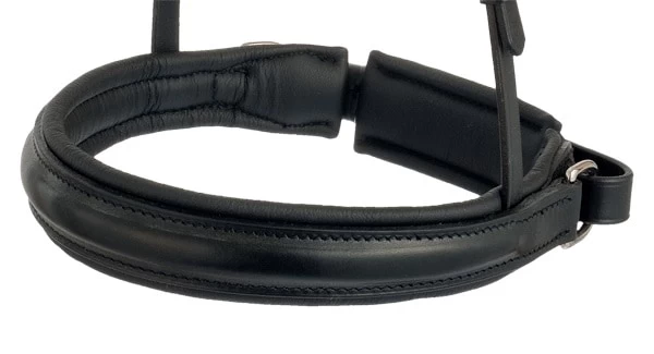 Softly padded 4 cm wide noseband for use on a double bridle or when riding without a flash noseband. Otto Schumacher are renowned for their exquisite leather goods, their nosebands being no exception. This noseband is available in Black or Tan with a matching or white lining. Additional options are available with personalised designs. Such additional options include brass buckles and a patent noseband.
