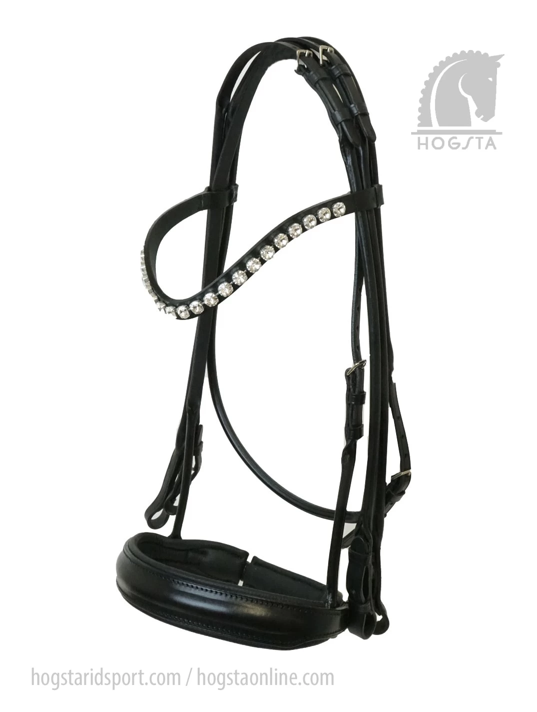 The beautiful bow-shaped browband is decorated with 10 mm large genuine Swarovski stones Rivoli in the color Crystal.