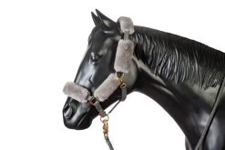 Sheepskin halter of the highest quality. This sheepskin halter from EA Mattes is grey with stylish brass fittings. In addition, a matching lead rope is included in grey, also with brass fittings.