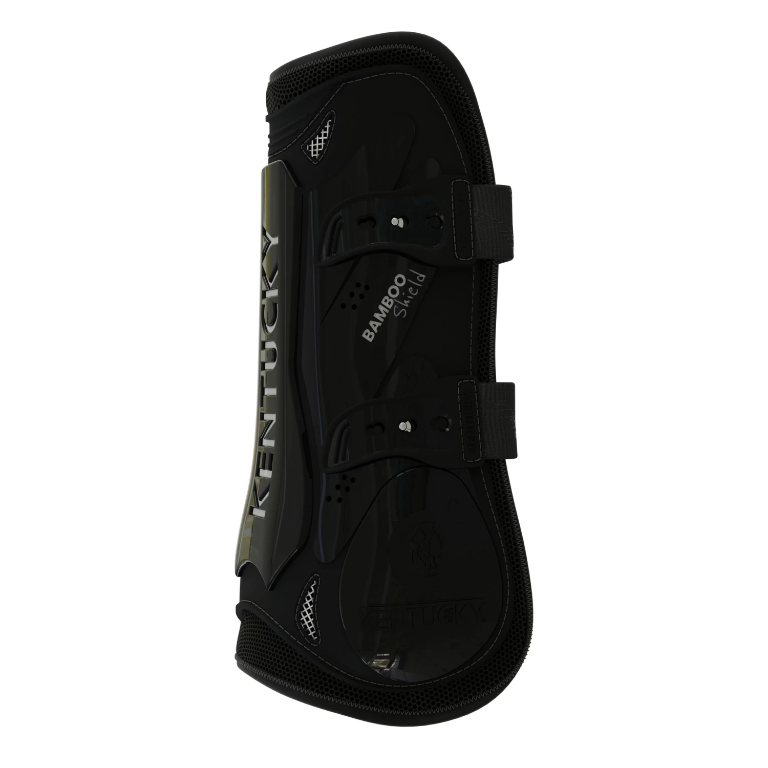 Tendon Boots Bamboo Elastic are the perfect boots for your horse! The boots are made out of a strong TPU shell with multiple ventilation holes at the tendon area and a bigger triangle mesh ventilation. The Tendon area is also reinforced with a bamboo shield since Kentucky have focused on sustainability and wanted to develop a new green technology. Bamboo is the fastest growing plant in the world and has an enormous tensile strenght and avoids penetration of sharp object. The bamboo shield is also anti-bacterial. Where the horse is flexing the boots have a soft natural rubber piece to avoid friction.