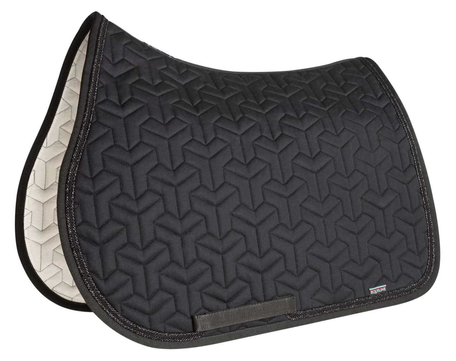 The Tetrix jumping saddle pad is made in a really nice design. It is quilted in a nice tetrix pattern and has beutiful passpoals along the edge. This saddle pad is in black with two passpoals in black glitter.