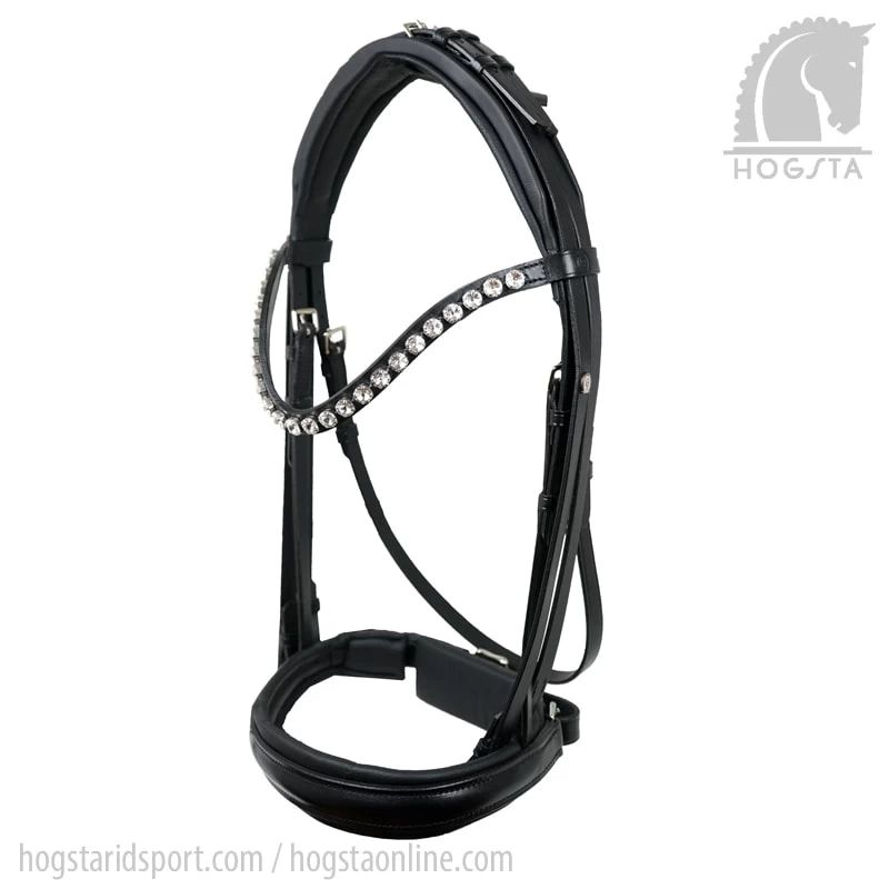 This double bridle has the soft neck piece and the well padded noseband Comfort XS and the beautiful browband with Swarovski crystals in the color Crystal.