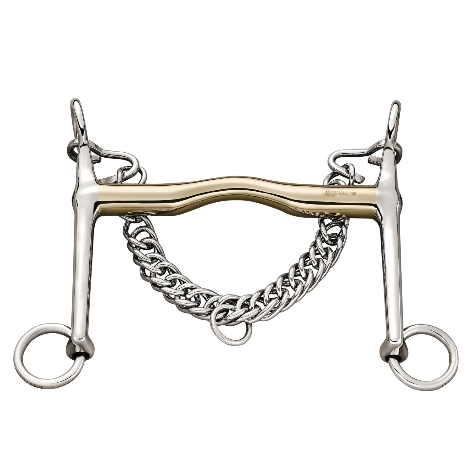 This Weymouth bit from Sprenger is made of Sensogan, a unique metal that reduces oxidation and promotes salivation. Choice of short (5 cm) or long (7 cm) stainless steel shanks to match other details on the bit.